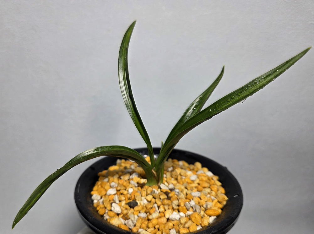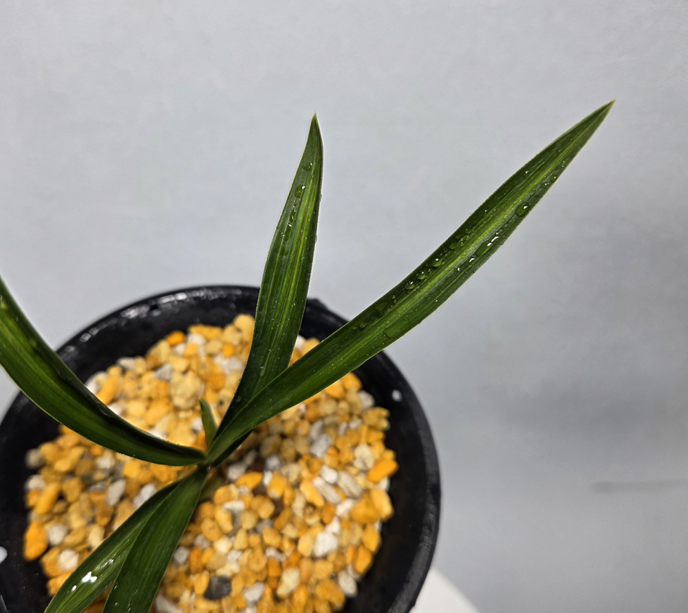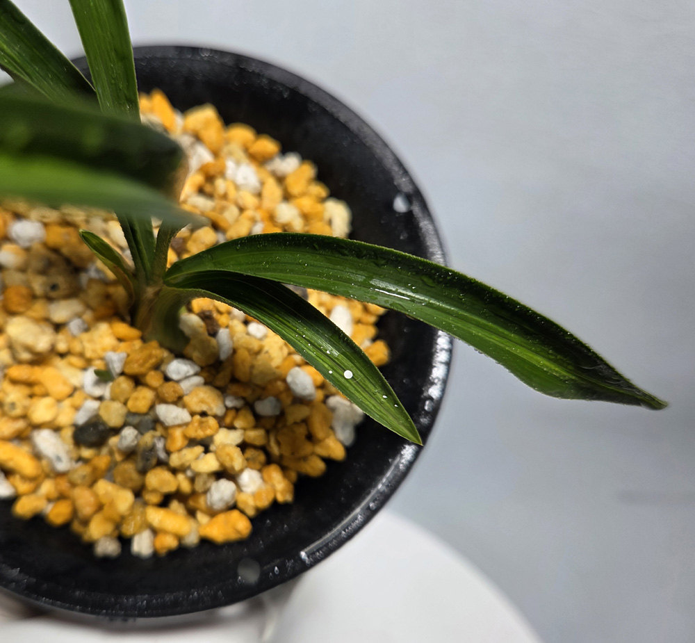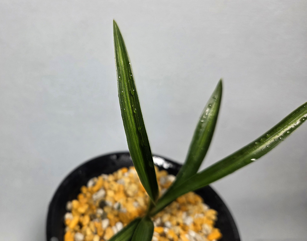 시컴한 후육질에 녹색의 산반성 중투 무늬가 잎장 마다 잘 들어 있습니다.