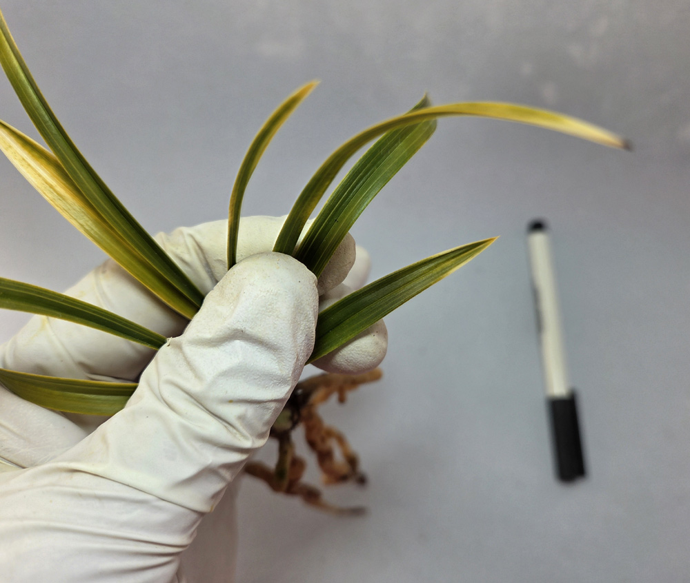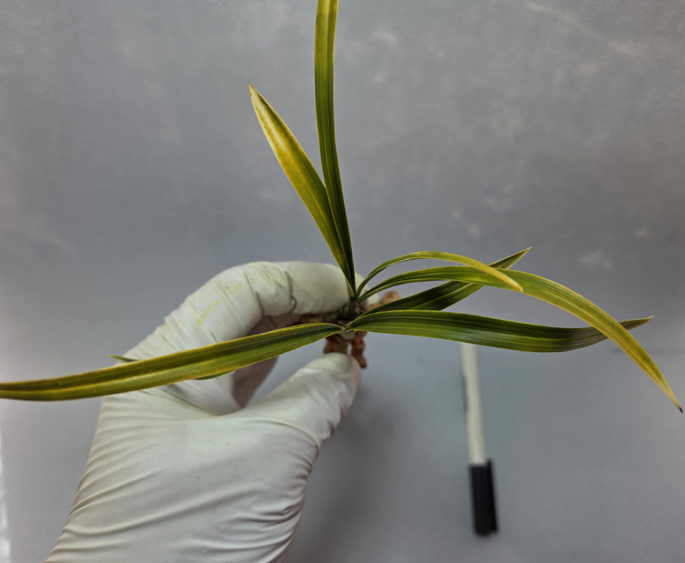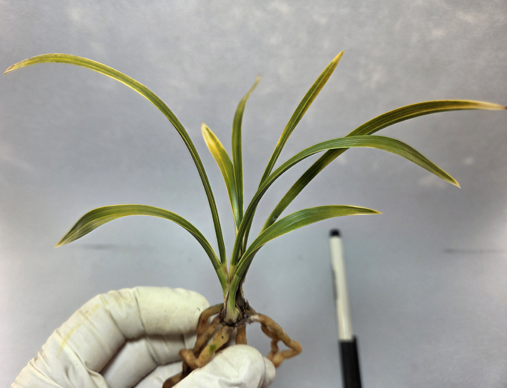 산지는 경남이며, 예전 꽤나 고가에 거래되었던무명 원판성 홍화 입니다.예명은 미화홍 입니다.전형적인 홍화반의 서반 무늬를 가지고 나오며,탄력 받음 서반 무늬도 매우 화려하게 나와,엽예와 화예를 동시에 즐길수 있는 난초입니다