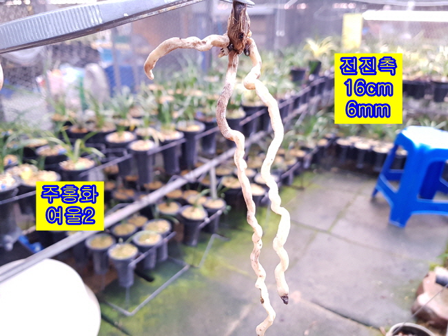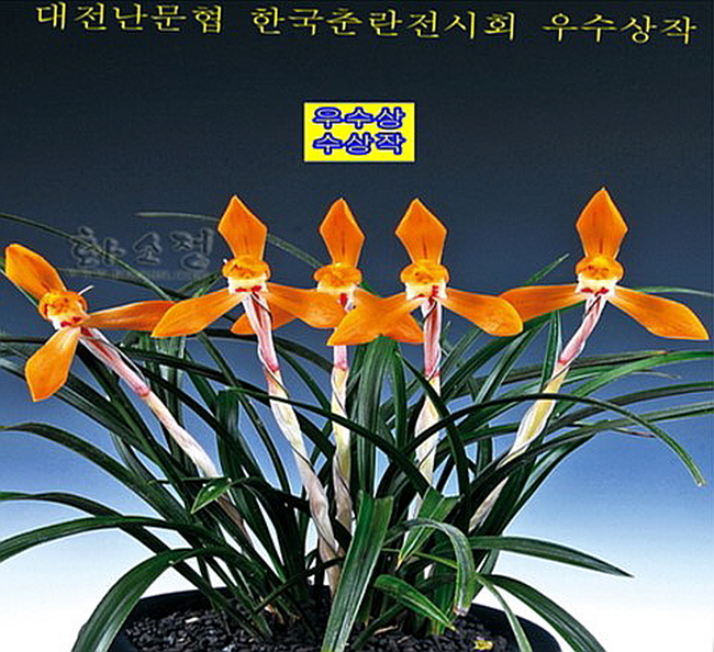 매력적인 진한 주홍화로 색상이 우수하며 대륜으로 화근이 없는 여울 품종입니다. 2007년 등록된 품종이며 한춘대전에서 주금화부문 1위를 한 품종으로 각 전시회마다 좋은 성적을 내는 품종입니다.