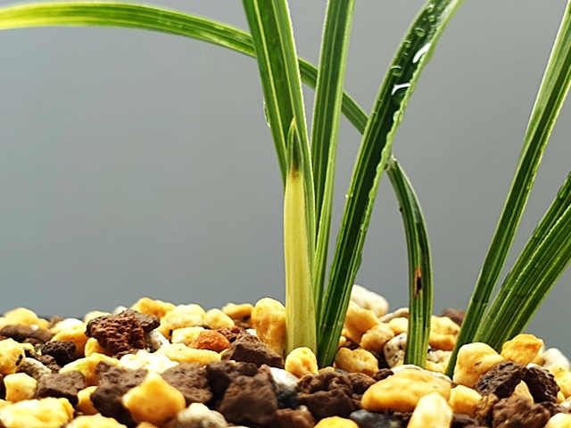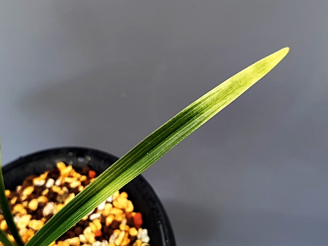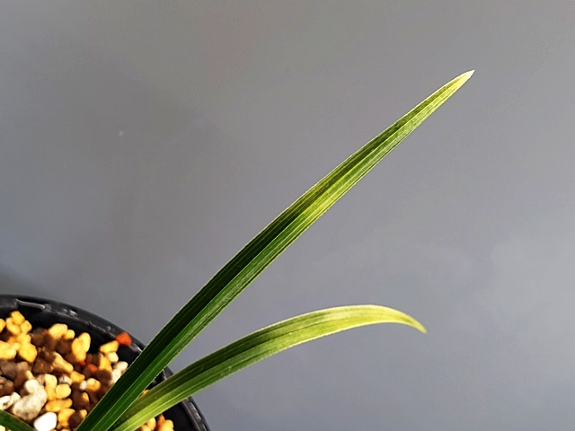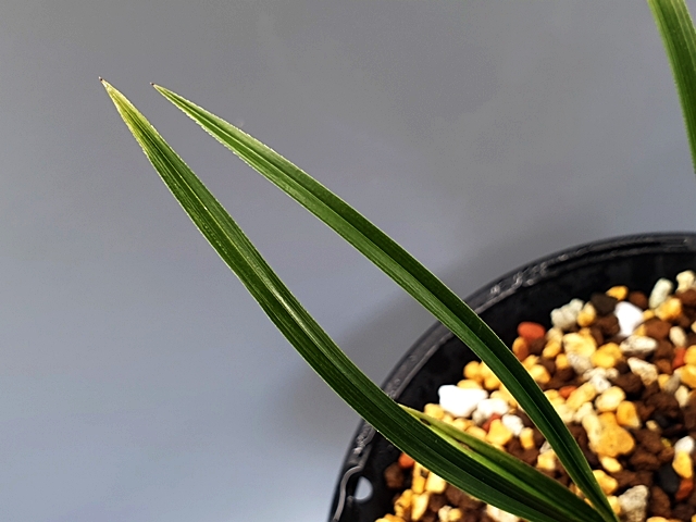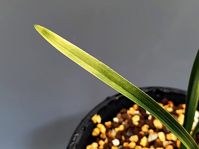 단단한 엽성에 잎 끝 찝어 있는 색감 좋은 난초