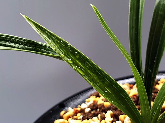 두툼 단단한 엽성에 배불뚝이변, 잎 끝 찝어 있네요.