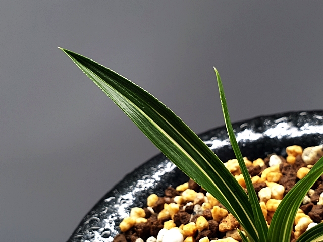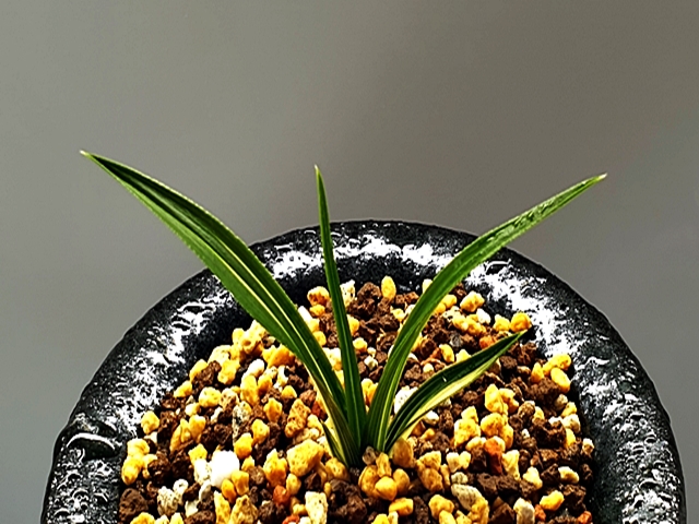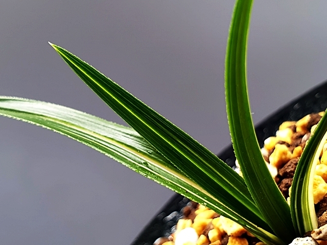 두툼한 육질에 배불뚝이변, 잎 끝 찝어 있는 난초
