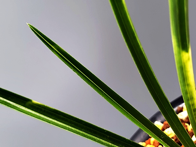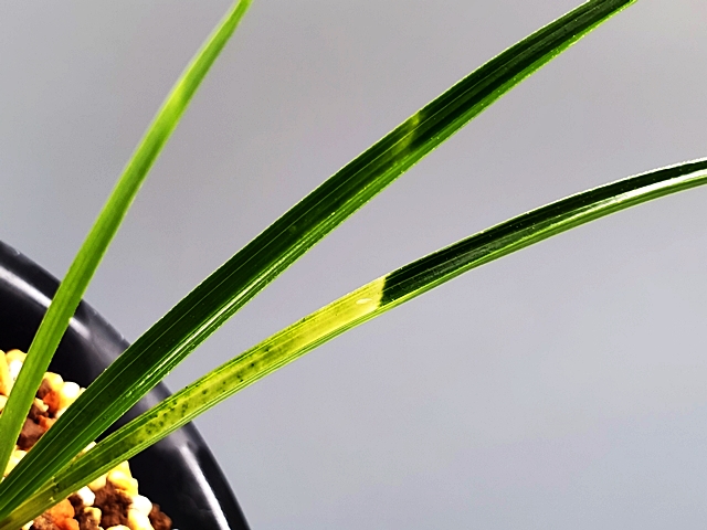 두툼 단단한 엽성에 잎 끝 찝어 있네요.