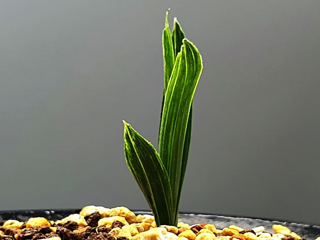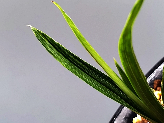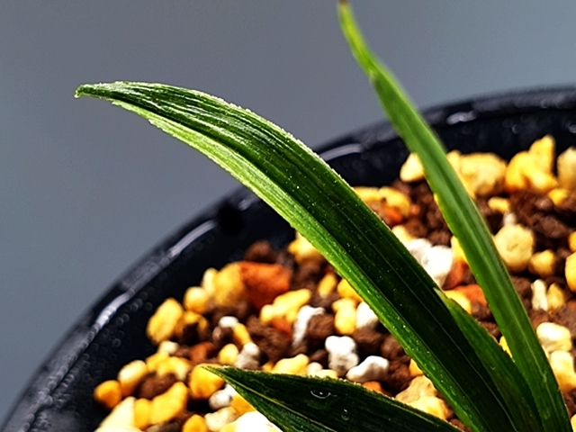 두툼한 육질에 배불뚝이변, 잎 끝 찝어 있는 난초