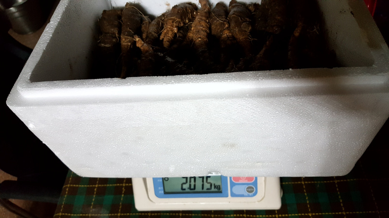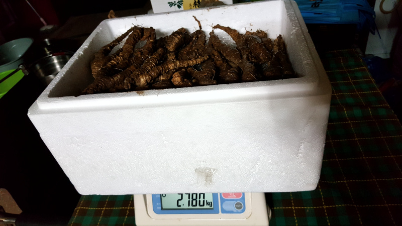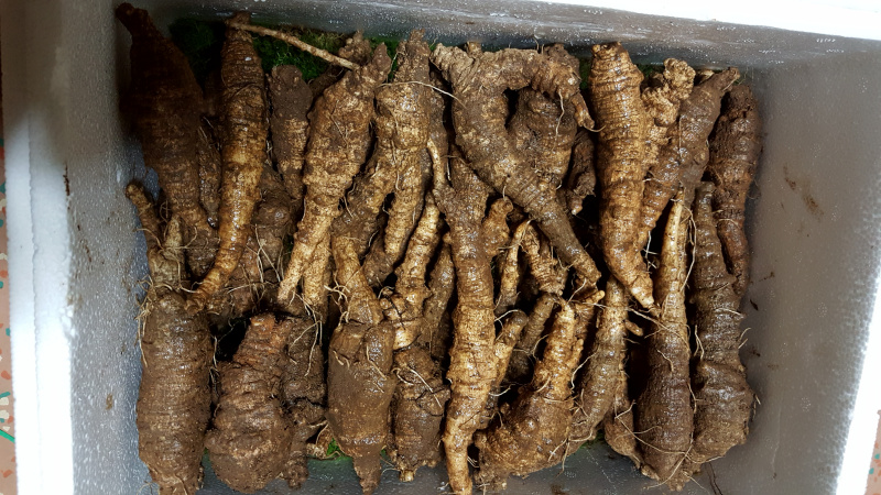 씨알 좋은 더덕 2키로와 그보다 좀 작은 더덕 600그램 입니다