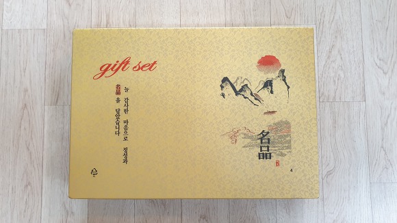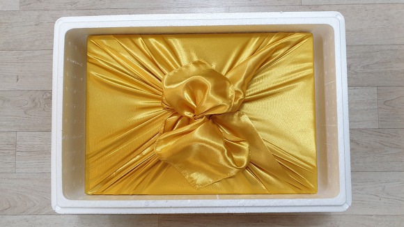 고급우드락박스에 금색보자기로 잘 싸서