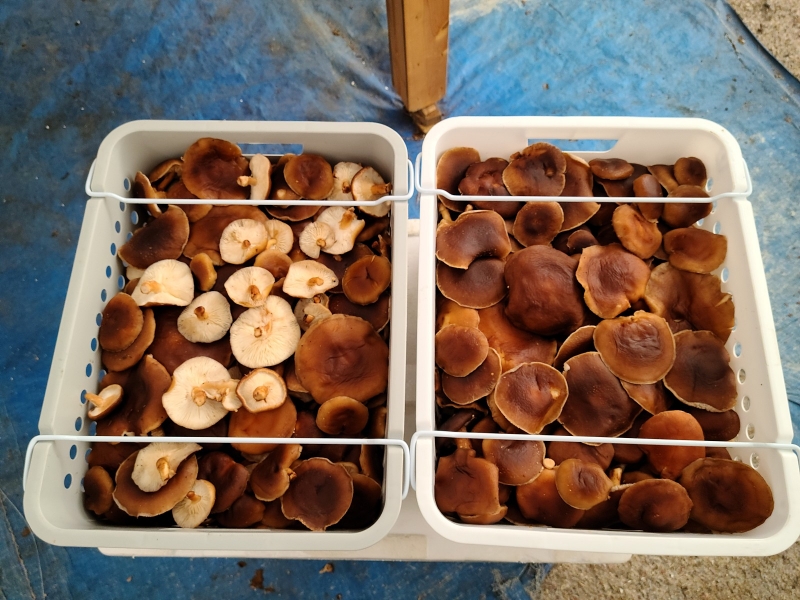 버섯의 상태는 좋으나 엊그제 내린비로 수분을 좀 먹었습니다.
