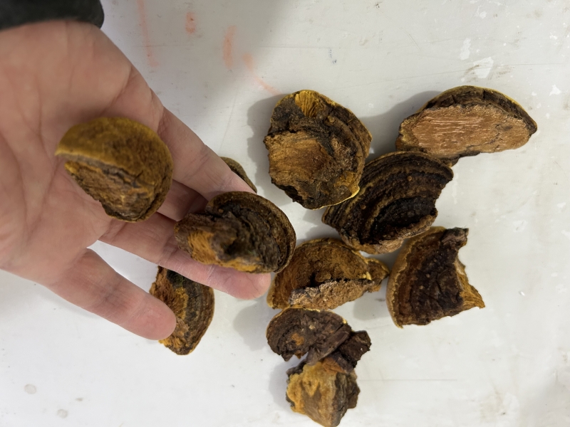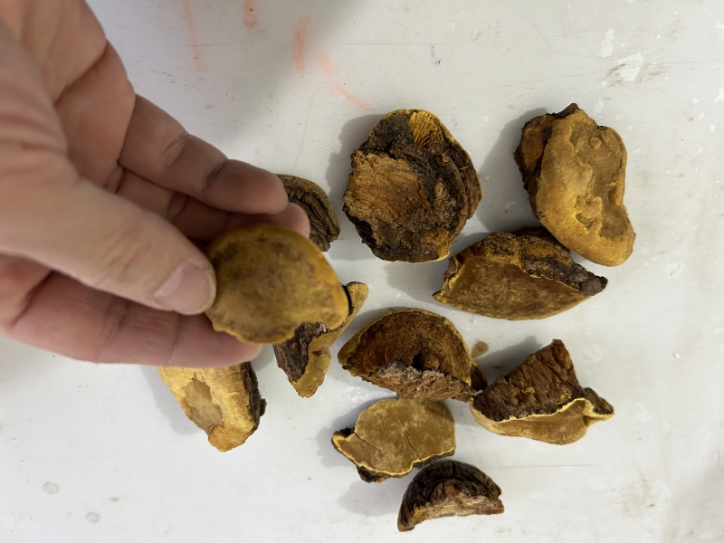 진짜 뽕상황버섯은 균공이 없으며 향이 없습니다 .