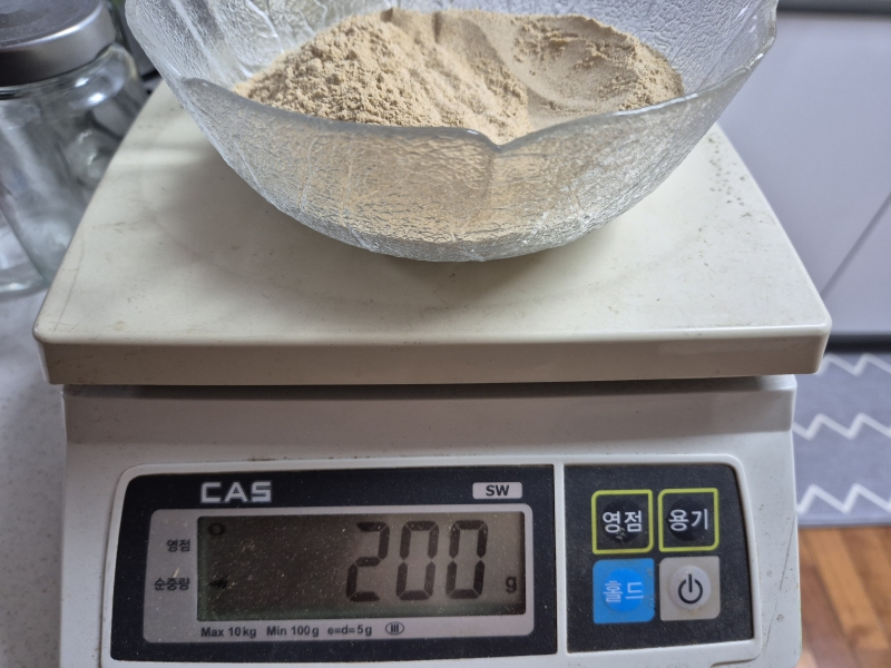 한국양봉협회규격병 2.4킬로 1병당 자연산 도라지 분말 200g씩 넣어서 보온상태로 90시간 이상 숙성 시켰습니다