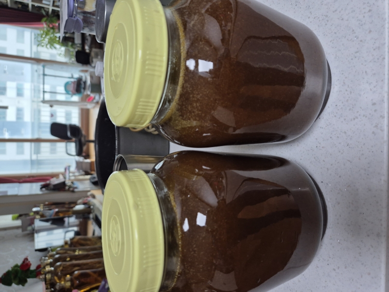 한국양봉협회규격병 2.4킬로 1병당 자연산 도라지 분말 200g씩 넣어서 보온상태로 90시간 이상 숙성 시켰습니다
