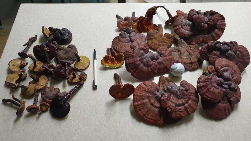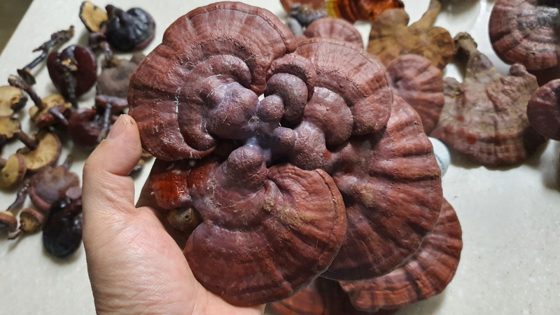 크기가 좋은 대물 영지버섯 포함 건조와 생재 모듬 일괄 한세트 판매합니다