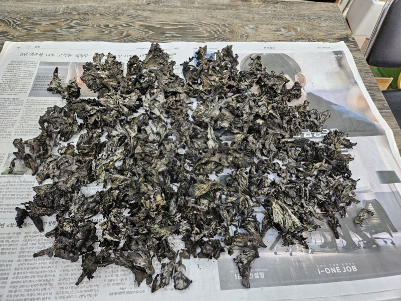 생물먹버섯 3키로를 깨끗이 손질해서 말린것입니다.