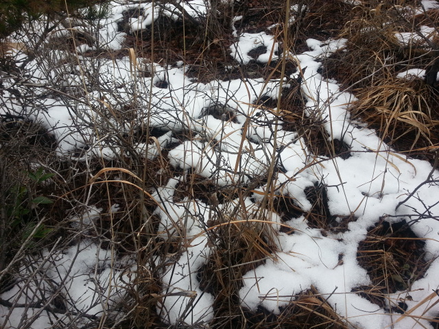 눈이 싹대를 덮고 있어 보이지 않았고 그나마 눈이 녹으곳에서 볼 수 있거나