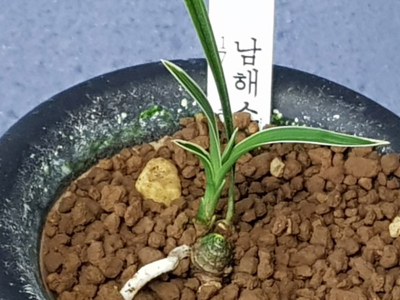 남해소를 배양하다가 변이가 생겨 설백 복륜으로 잎끝부터 기부까지 멋지고 당당하고