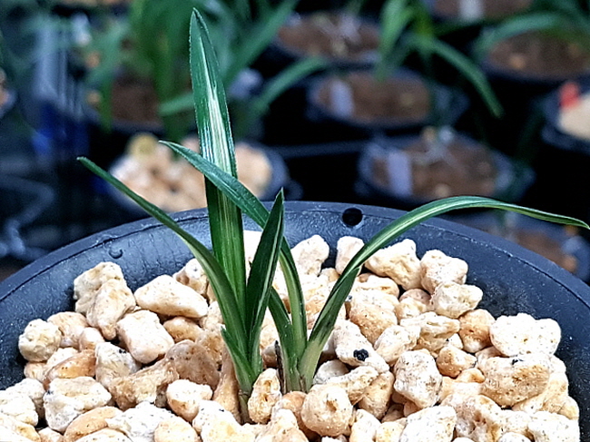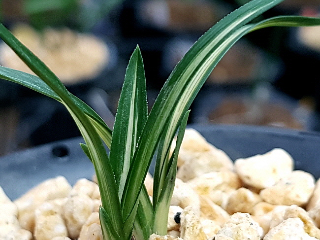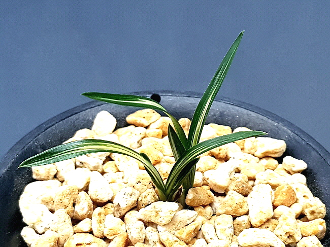 작지만 명품의 자질을 가진 단엽성 백산반중투입니다. 까칠한 엽성에 강한 거치를 보이는 종자로 잔라사가 있는 단엽성 백중투입니다. 엽성이 잘 생긴 종자성  백산반중투로 키울만한 종자성 품종입니다. 진주 산지로 엽성과 변빵이 더 발전할 종자로 산채 뒷대는 다 녹고 전진만 두촉 남은 종자입니다.