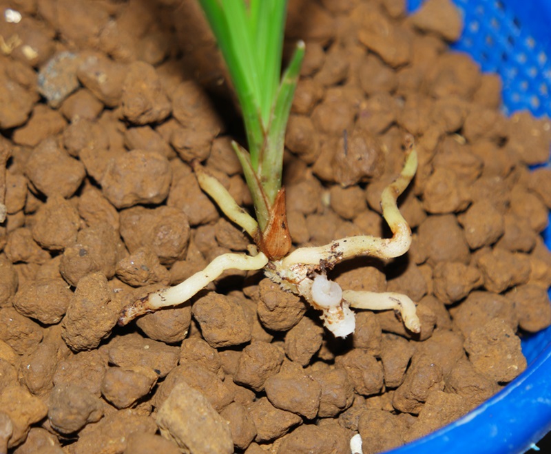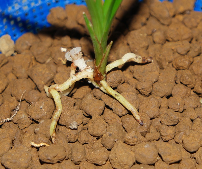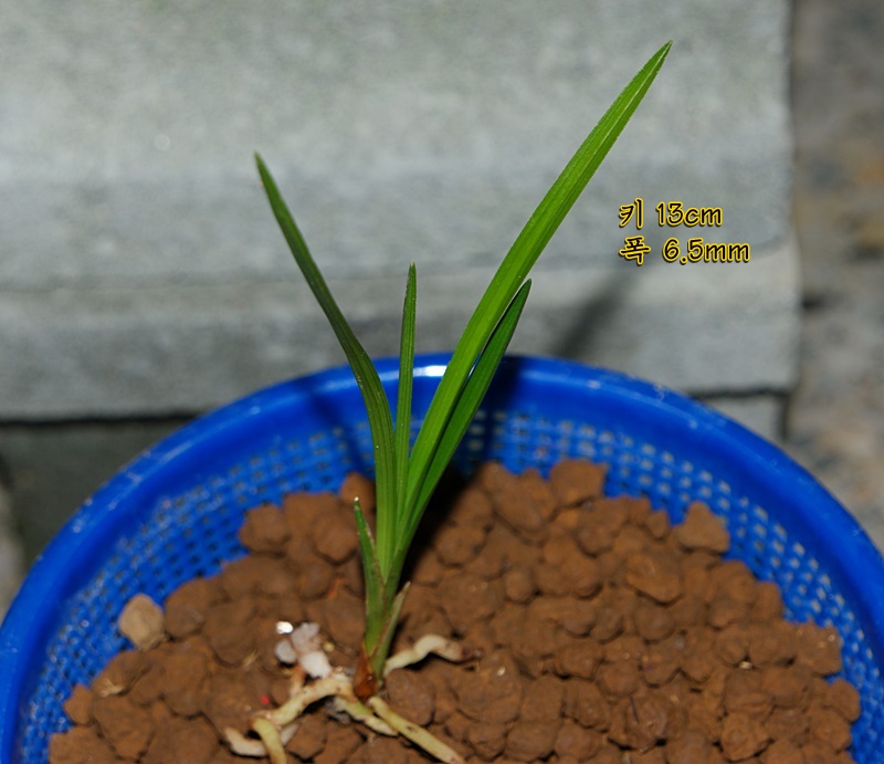 짤막하고 가는 뿌리에 바가지변의 잘생긴 두화목입니다.
