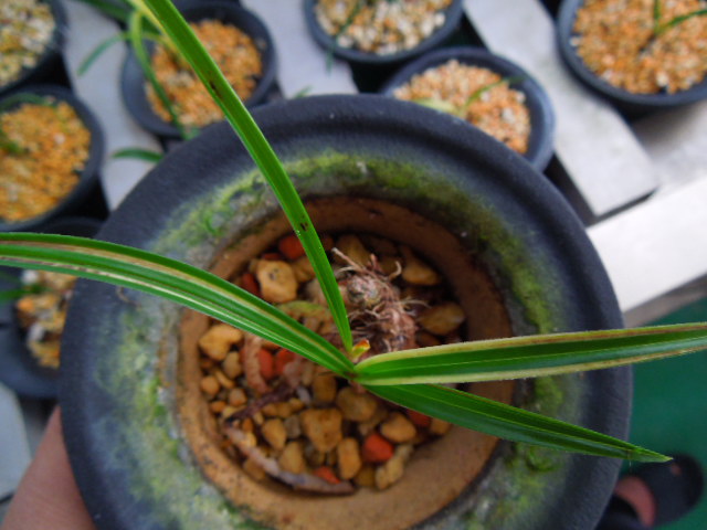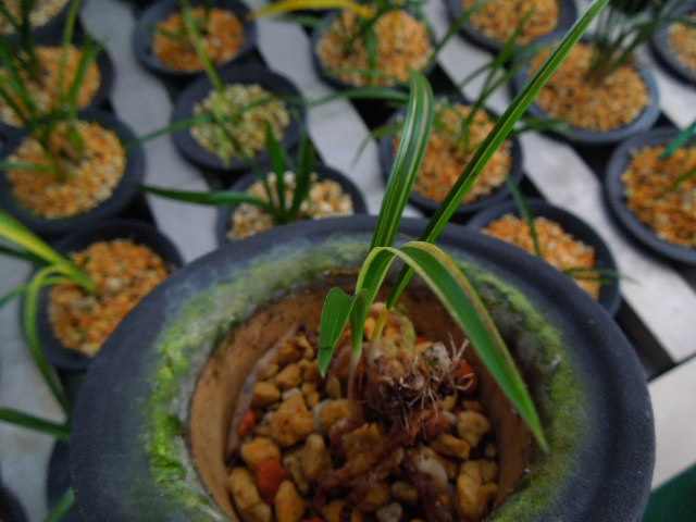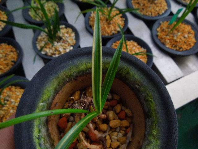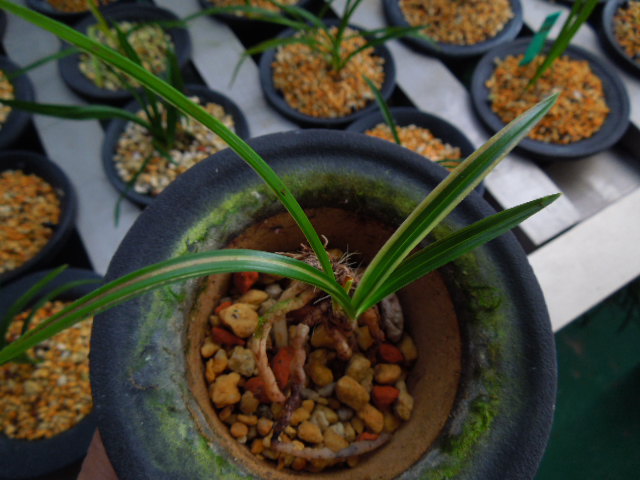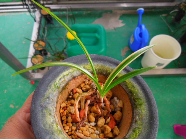 산반복색으로 고가구입 재배하던중 홍반섞인 반호 나와 분리재배하고있는 난입니다