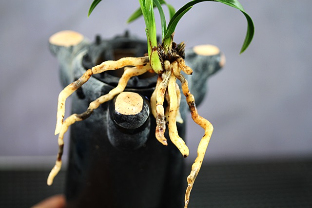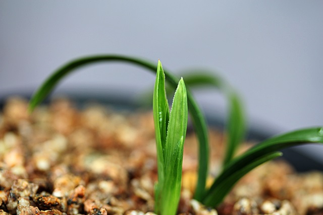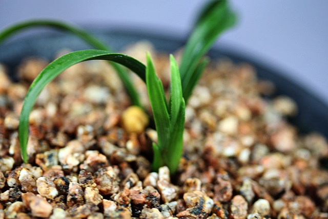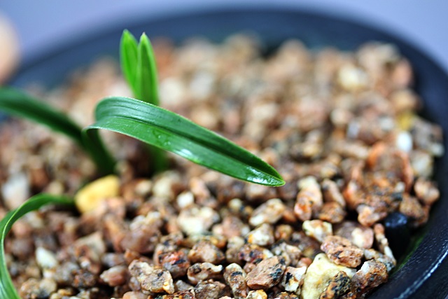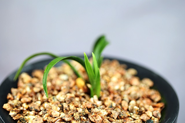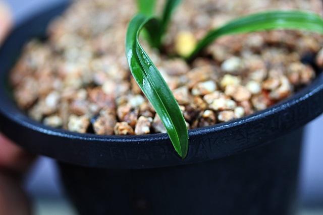 산채당시 생강근으로 산채하여 분에서 배양중이던 환엽서반 종자목입니다.신아출아시 반이