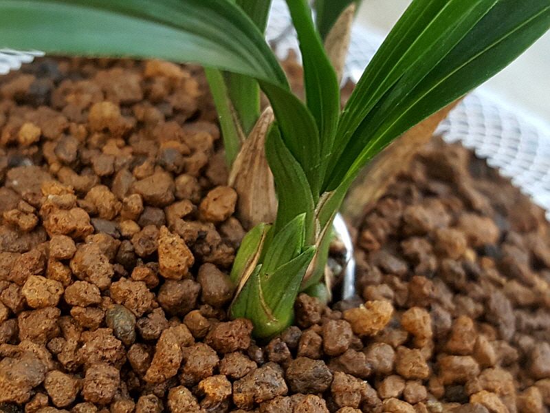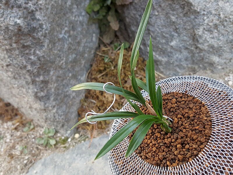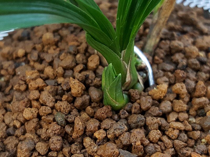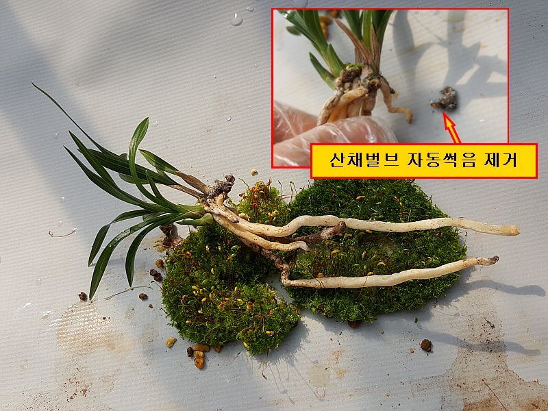 높이 8cm, 넓이 0.65cm, 미분주/미개화(산채 콩벌브2개 자동썩음으로 제거), 3촉 + 한잎장1촉 + 신아1