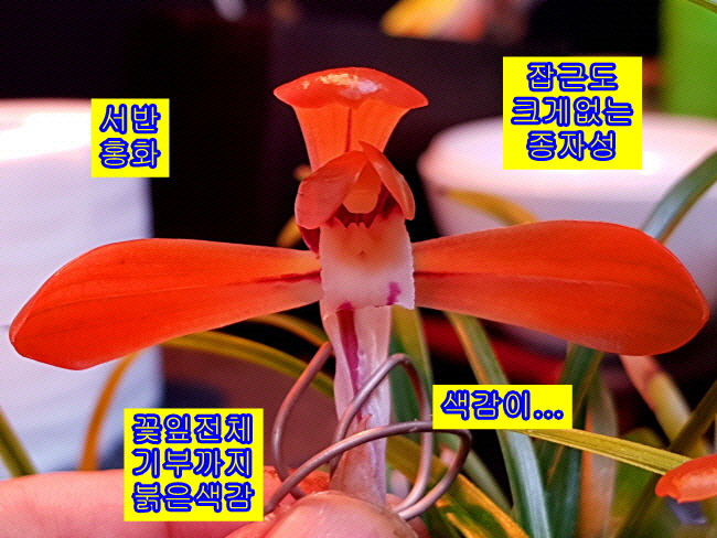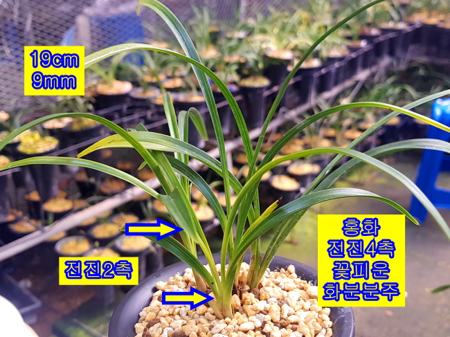 화통 속에서 일찍 개화가 되어 변이 조금 길어 졌지만 색감은 A급 수준 색상으로 함평종자입니다.