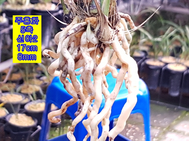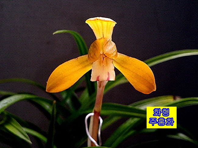 화형이 우수한 주홍화입니다. 화형이 좋고 발색이 잘 되는 품종이라 키워볼 품종입니다. 경남 산청산입니다. 꽃대 올림도 쉽습니다.