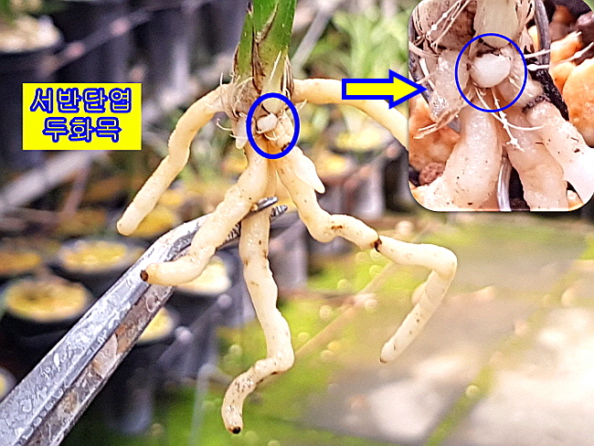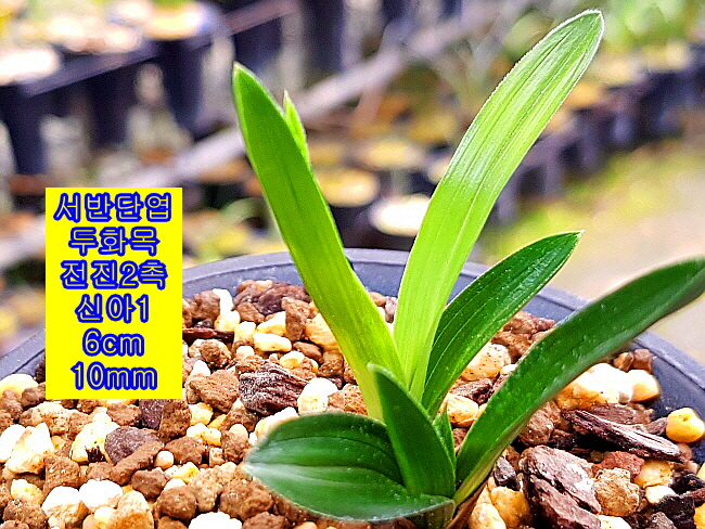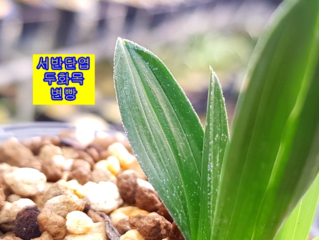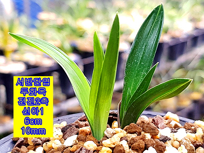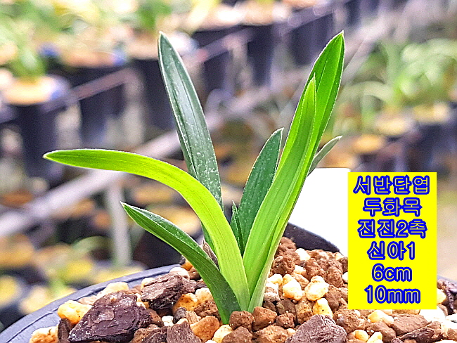 마루변 서반단엽 두화목입니다. 두화목 개체로 서반은 1년 후 소멸되 가는 중입니다. 장성산으로 여러촉으로 좀 더 크면 대물감입니다. 소멸성 서반이라 꽃도 기대해 볼 만한 품종입니다. 산채 뒷대는 뿌리가 없는 벌브1촉은 벌틔용으로 남기고 전진 2촉신아1개 입니다.