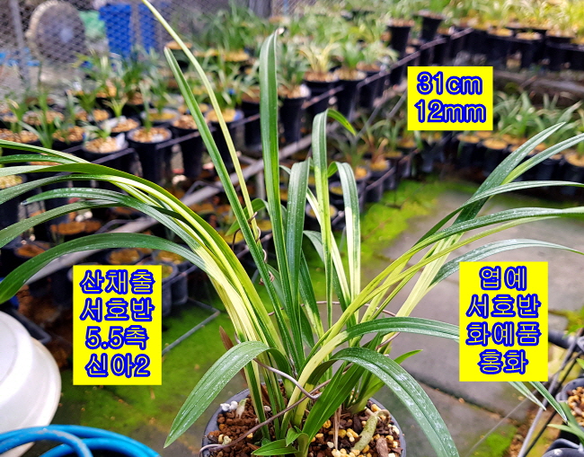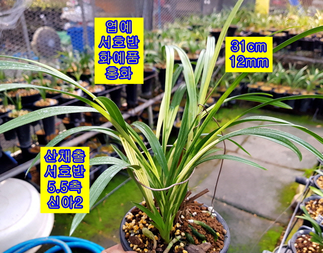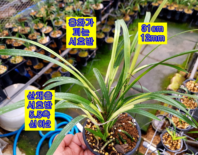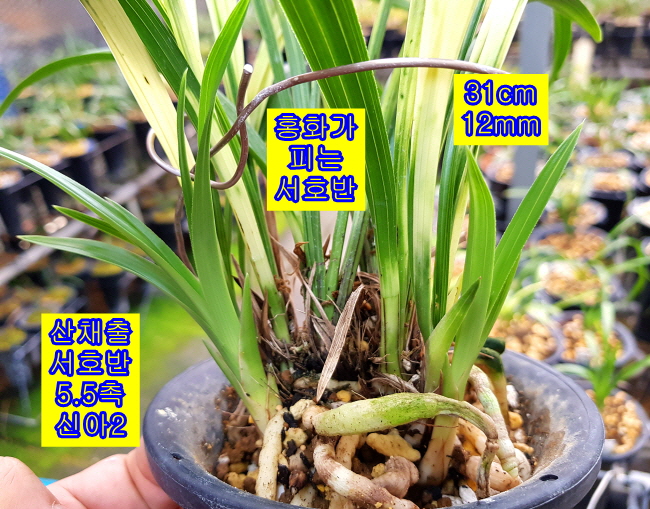 엽예 서호반과 화예 홍화가 피는 양예품 서호반입니다. 나산 산채출발로 재배중 뒷대가 자연도퇴 후 분주가 없습니다.