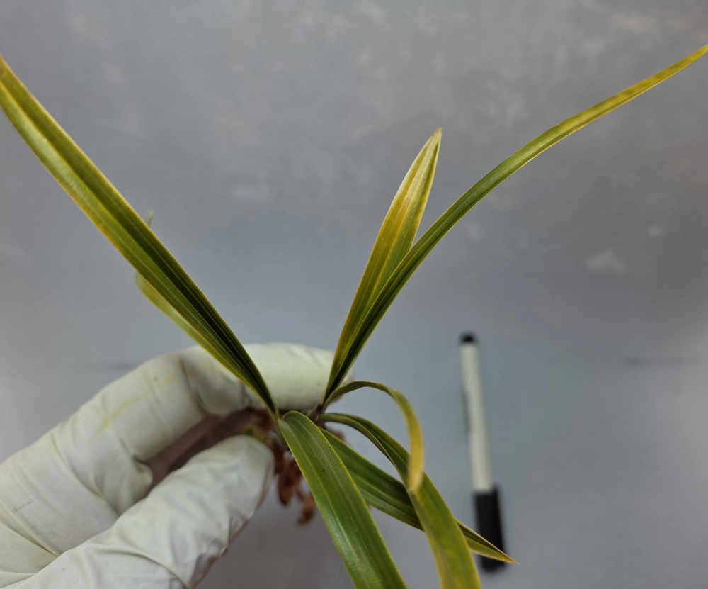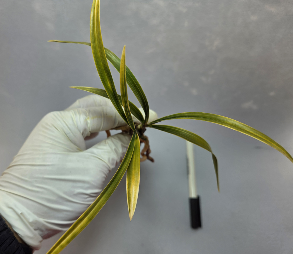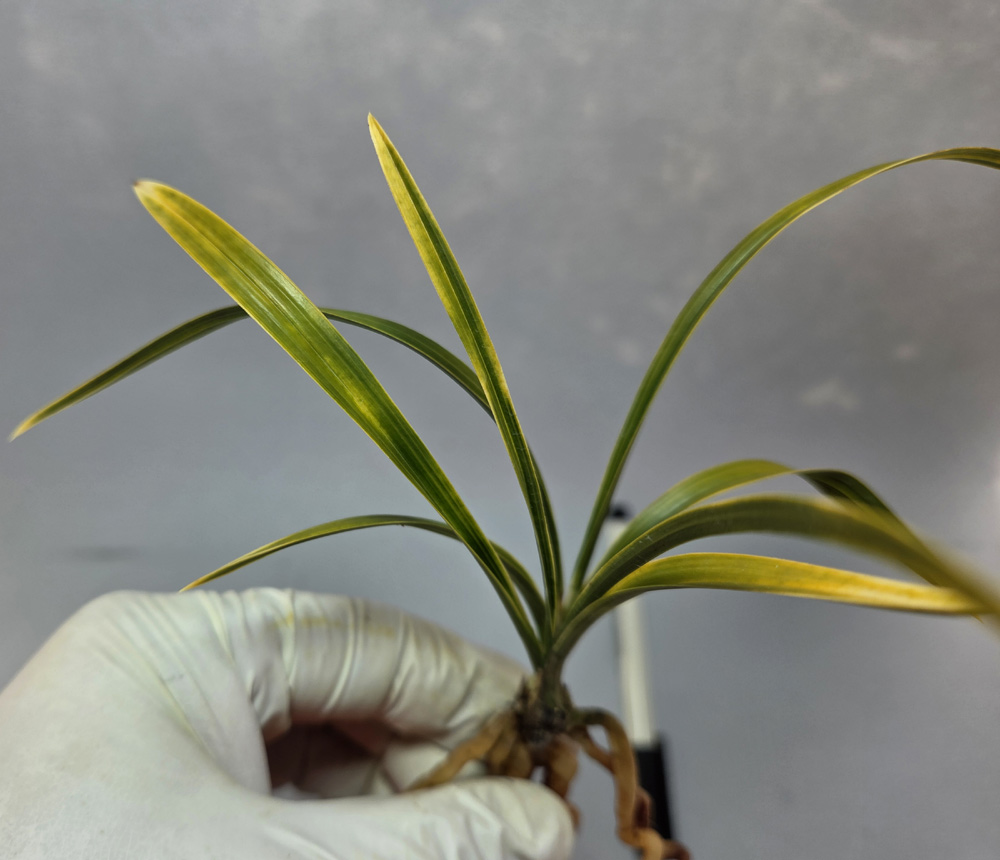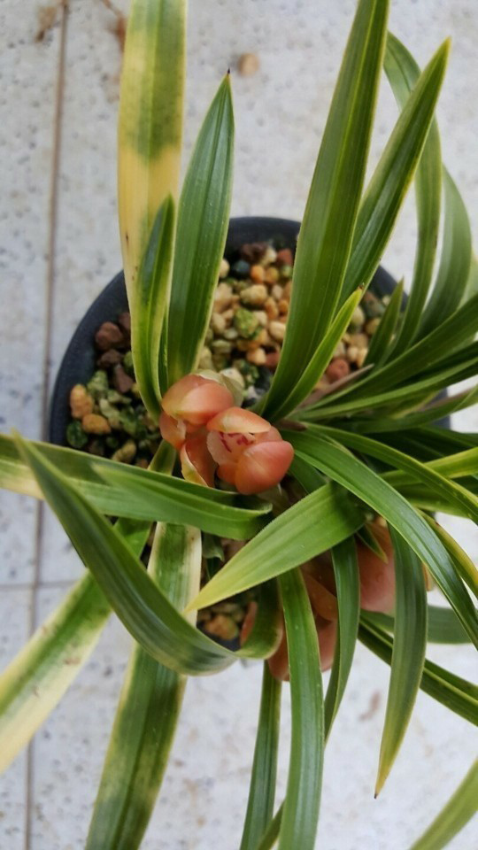 산지는 경남이며, 예전 꽤나 고가에 거래되었던무명 원판성 홍화 입니다.예명은 미화홍 입니다.전형적인 홍화반의 서반 무늬를 가지고 나오며,탄력 받음 서반 무늬도 매우 화려하게 나와,엽예와 화예를 동시에 즐길수 있는 난초입니다
