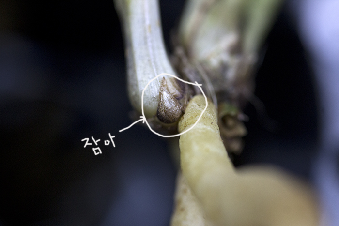 뿌리 건강한 가운데 가을눈 잘 붙어 있습니다.