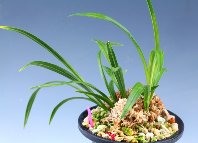짙은 선홍빛이 기부부터 녹을 밀어내고 점차 짙어지는 홍화이며 화형또한 단