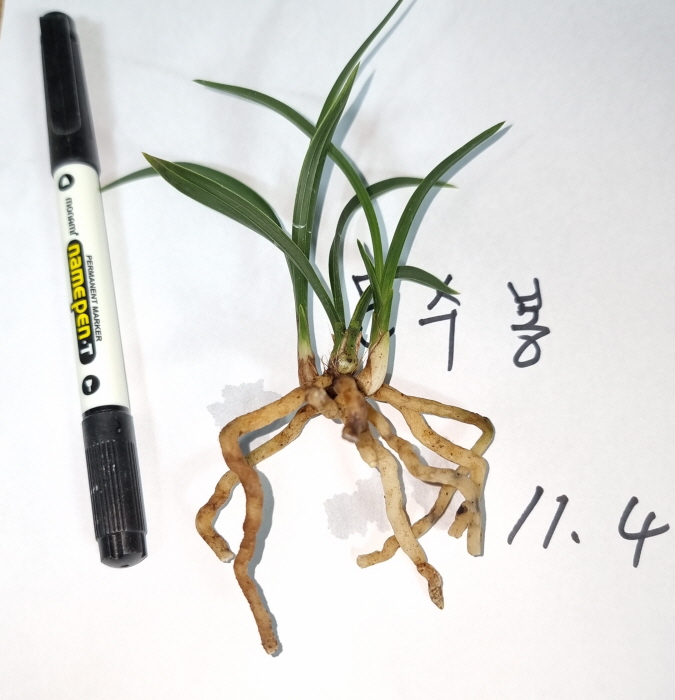 작은 아주 어리지만 뿌리상태가 좋아서 종자목으로 배양하셔도 좋은 난 입니다.